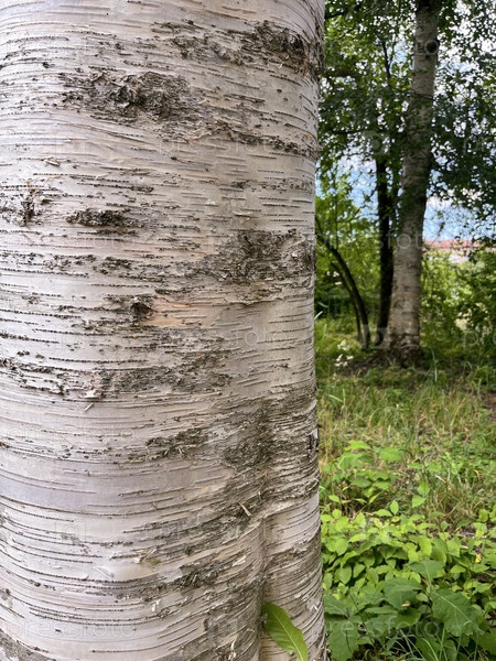 На фоне летнего леса фото ствола березы