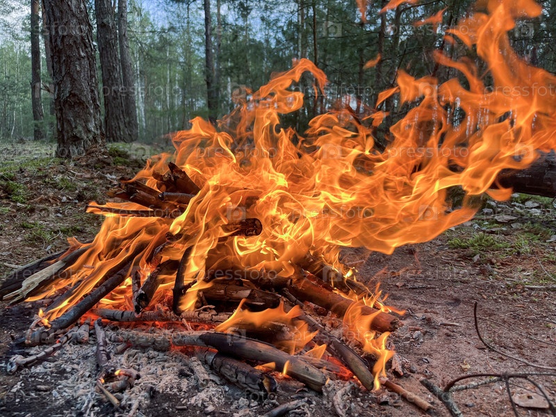 Костер для барбекю разводят весной в лесу