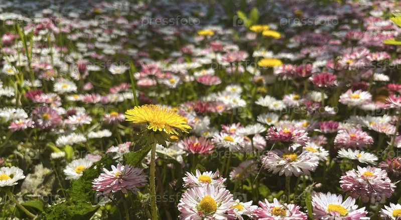 розовые маргаритки весной в саду