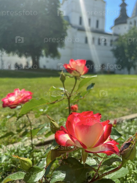 Летом на территории монастыря цветут яркие розы