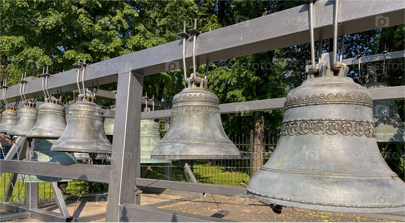 Рядом с музеем храма выставлены медные церковные колокола