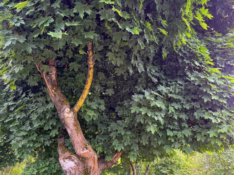 Летний лесной пейзаж - дерево с зеленой кроной в лесу
