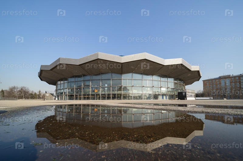 Отражение в воде здания Большого Московского государственного цирка на проспекте Вернадского г. Москва