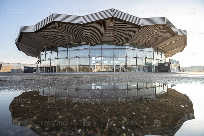 Отражение в воде здания Большого Московского государственного цирка на проспекте Вернадского г. Москва