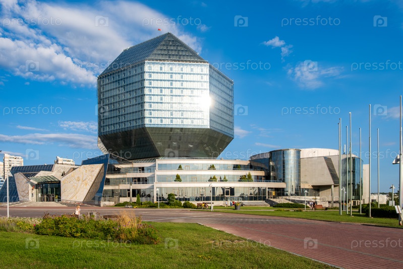 Минск, Беларусь - 16.08.24. Национальная библиотека Беларуси на фоне голубого неба