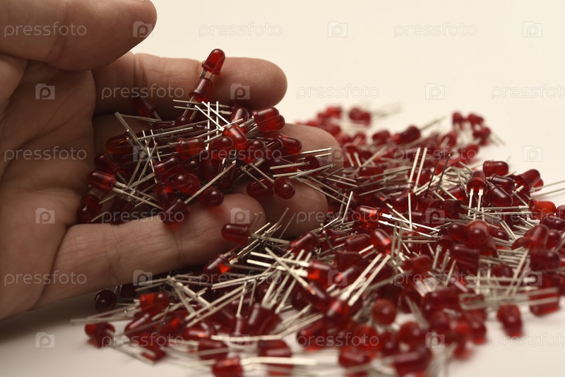 Красный светодиод горит в вашей руке. Электронный светодиодный элемент