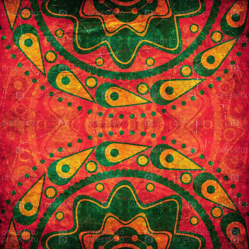 Зеленый орнамент на красном фоне