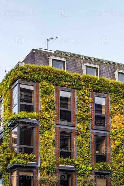 Городская архитектура встречается с природой: здание, увитое плющом, демонстрирует элементы зеленого и устойчивого дизайна
