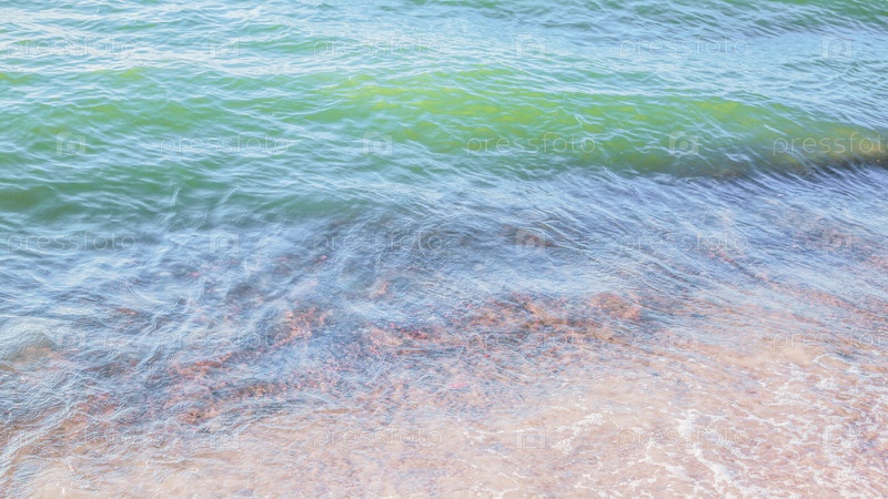 Кристально чистая лазурная вода с морской пеной, морской пейзаж на заднем плане