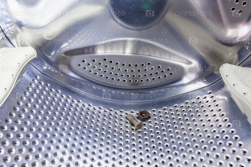 Выпавшие из карманов одежды болты и гайки находятся внутри стиральной машины