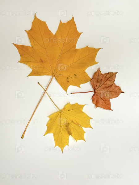Разноцветные осенние кленовые листья на белом фоне