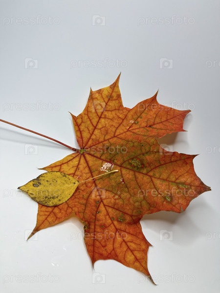 Золотой осенний кленовый лист на белом фоне