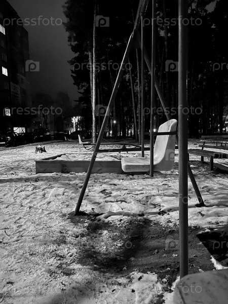 Детские качели поздно вечером зимой