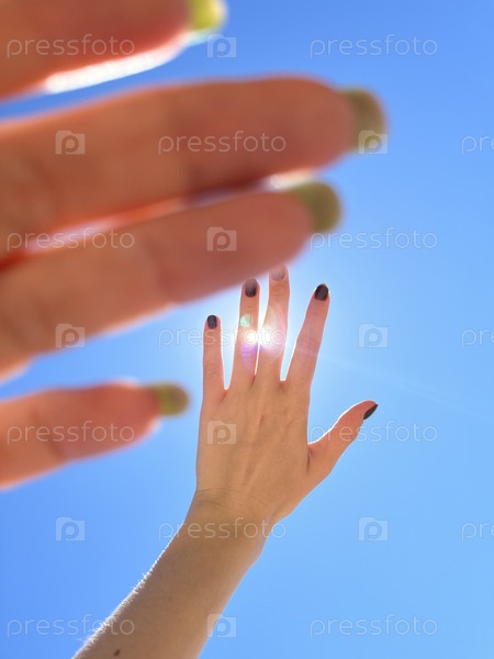 Руки на фоне летнего голубого неба с облаками