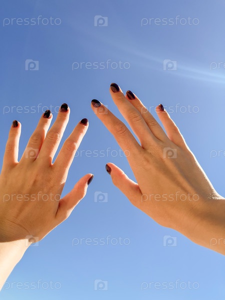 Руки на фоне летнего голубого неба с облаками