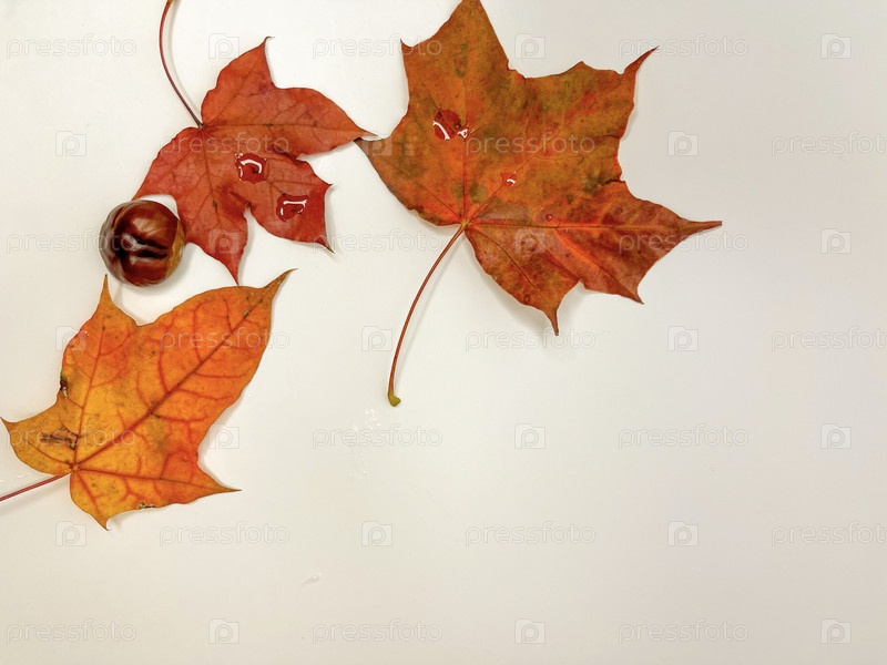 На белом фонеразноцветные осенние кленовые листья