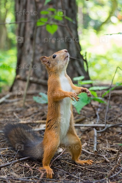 Белка стоит на задних лапах