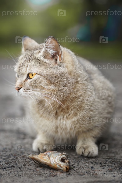 Кот смотрит на сырую рыбу