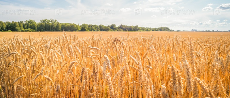 Поле желтой спелой пшеницы в солнечный день