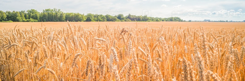 Широкое поле спелой пшеницы в солнечный день