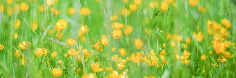 Желтые цветы среди зелени на лугу селективный фокус размытый фон
