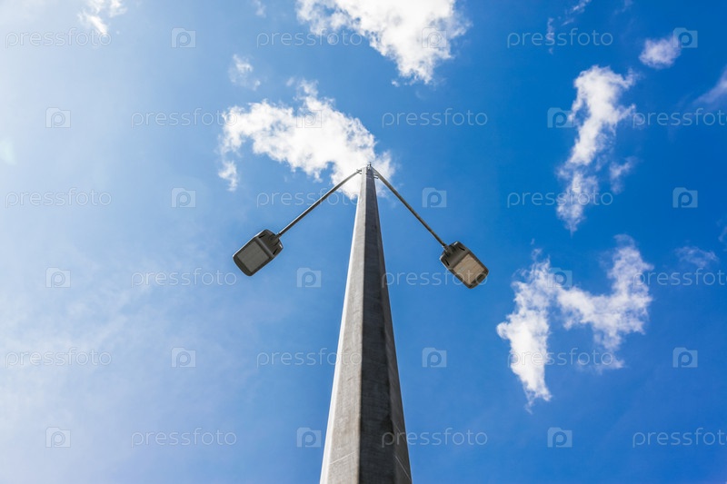 Столб с фонарем на фоне голубого неба с белыми облаками