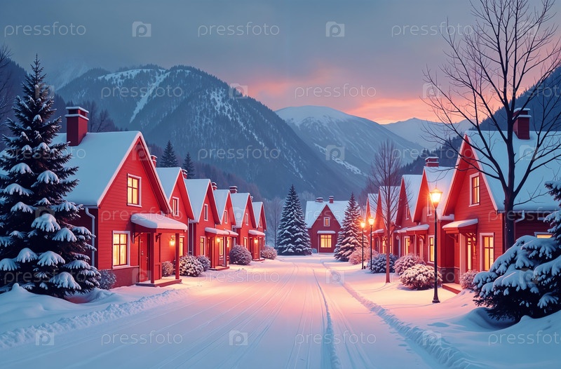 Городская зима, снегопад, елки в снегу, новогодний снегопад. Сгенерировано ИИ