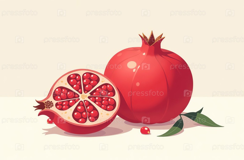 Гранат на столе, крупный план свежих фруктов, яркая кухня. Генеративный ИИ