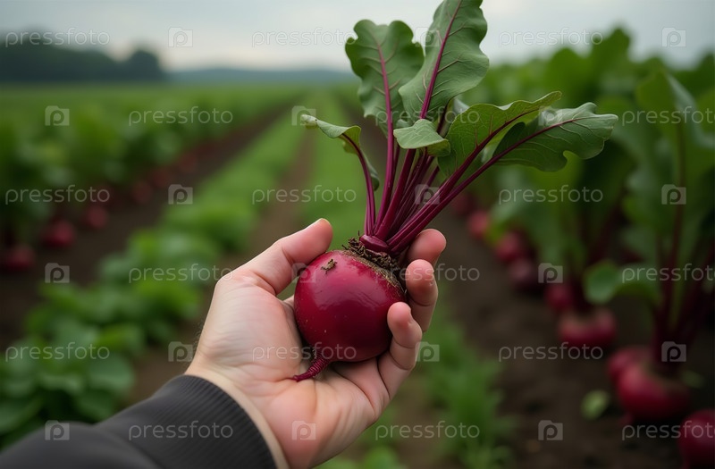 Большой огород свеклы, ферма, рассада, растения, овощи. Генеративный искусственный интеллект
