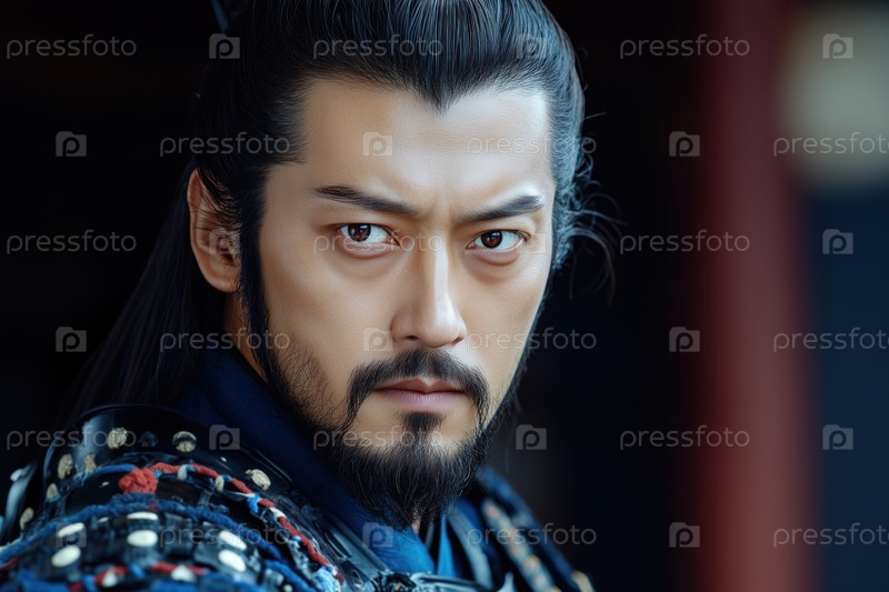 Портрет красивого азиатского мужчины в традиционном японском костюме