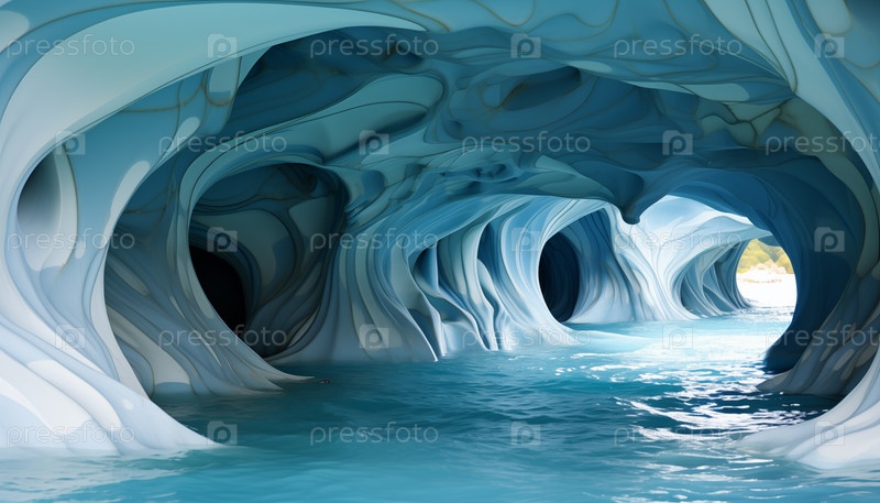 Прибрежная мраморная пещера с бирюзовой прозрачной водой