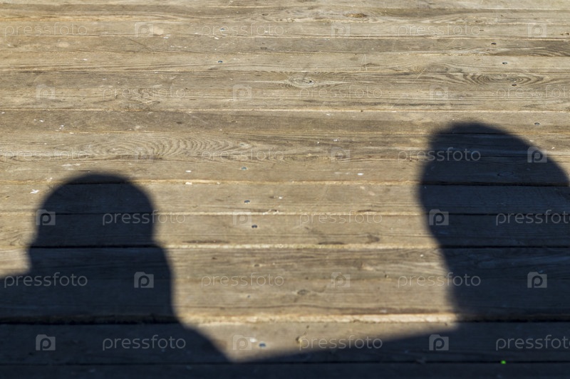 Тень людей, отбрасываемая на деревянную поверхность. Концепция