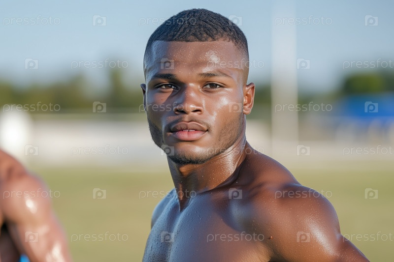 Портрет афроамериканского спортсмена, смотрящего в камеру