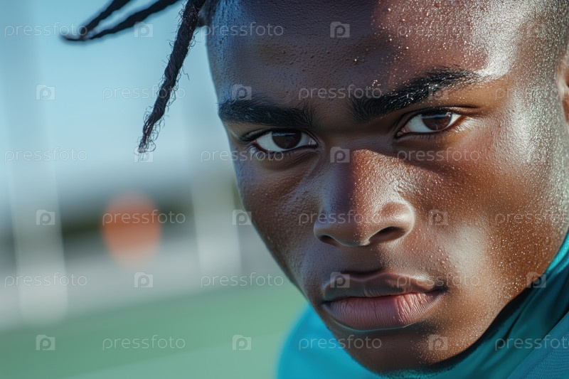 Портрет афроамериканца, смотрящего в камеру на спортивной площадке