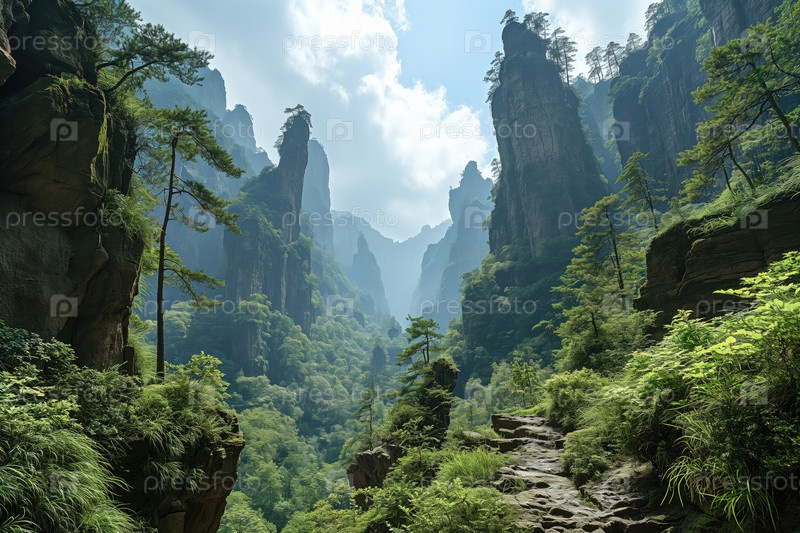 Красивый горный пейзаж с природными каменными столбами и скалами