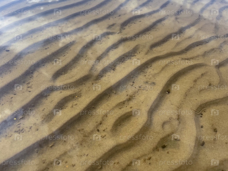 На песке на дне реки видны следы, оставленные прибоем