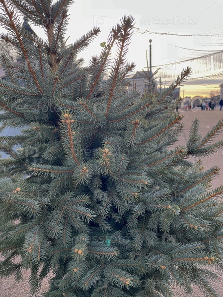 Ель на улице города после новогодних праздников