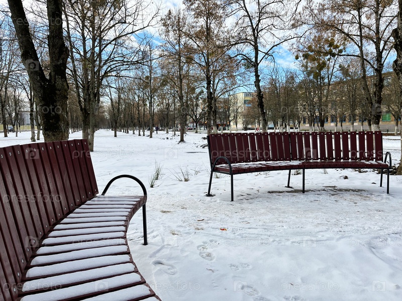 Фото зимнего парка со скамейками для отдыха