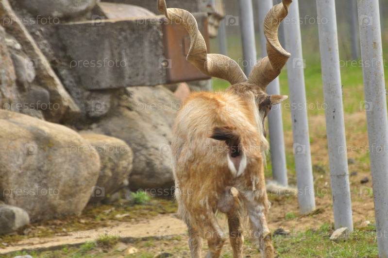 Животные в зоопарке. Винторогие козлы