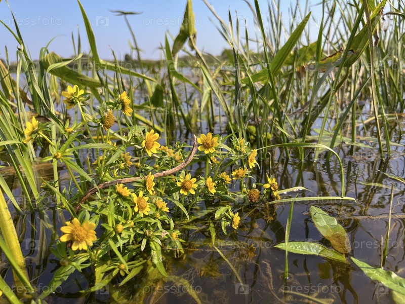 Растения растут и цветут в изобилии на реке