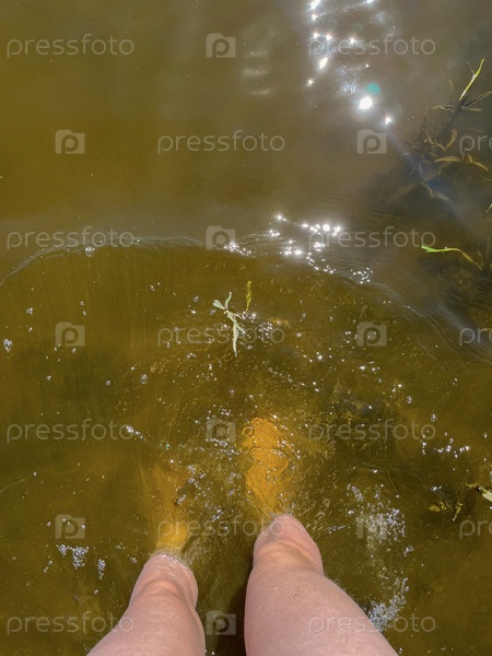 Ноги девушки в теплой воде Днепра