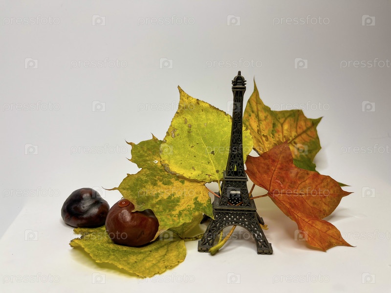 На белом фонеразноцветные осенние кленовые листья
