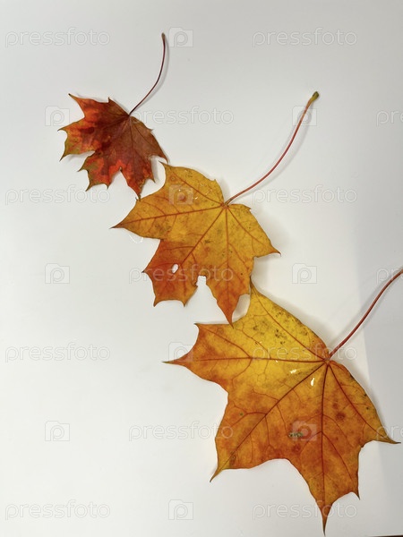 Разноцветные осенние кленовые листья на белом фоне