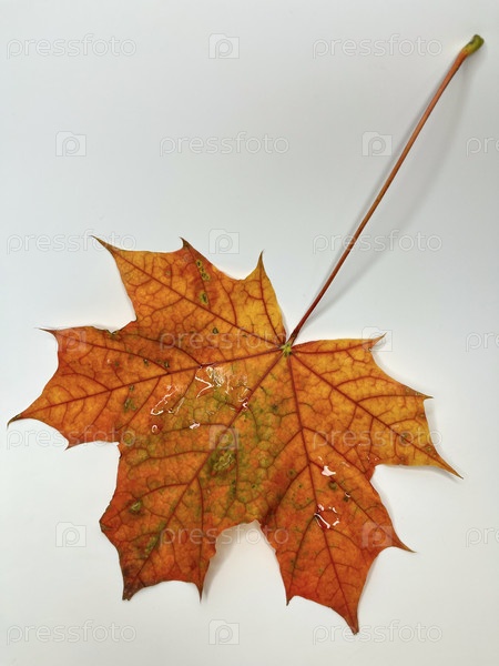 На белом фоне золотой осенний кленовый лист
