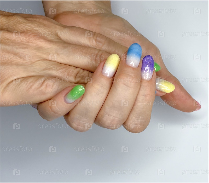 Ухоженные женские руки с покрытием разноцветным гель-лаком