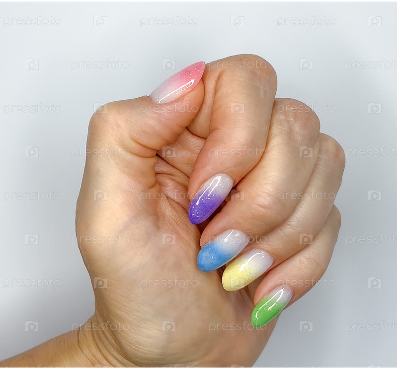 Ухоженные женские руки с покрытием разноцветным гель-лаком