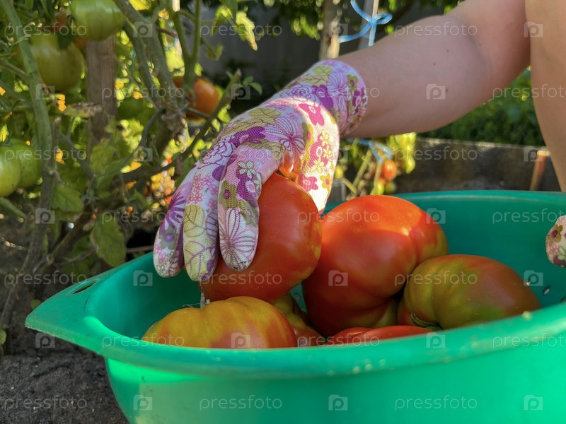 Помидоры растут и созревают в саду на грядке в открытом грунте