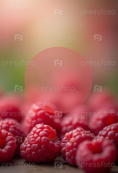 Зрелые ягоды малины представлены на округлом полупрозрачном фоне и с мягким эффектом боке, создающим мечтательную атмосферу.Упаковка для чая, джема или косметики с ароматом малины