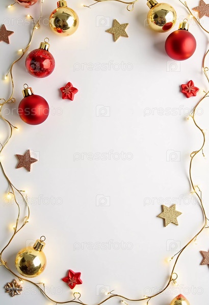 Потрясающая композиция из красных и золотых украшений, мерцающих огней и праздничных звезд создает прекрасный праздничный декоративный образ, подходящий для поздравлений с Рождеством и Новым годом. Генеративный ИИ