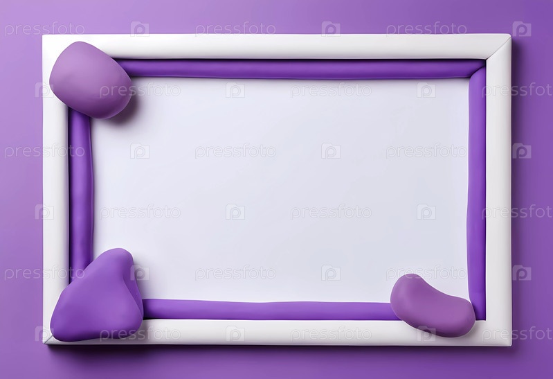 Уникальная прямоугольная рамка из пластилина расположена на белом и фиолетовом фоне. Фиолетовые акценты подчеркивают рамку, демонстрируя художественную выразительность и игривость